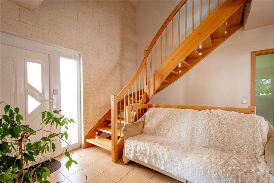 - Top vollunterkellertes 5,5-Zimmer-Einfamilienhaus mit - bei Bedarf - separater Einliegerwohnung im UG, Baujahr 2010, 3-geschossig mit UG, EG und DG, Satteldach mit 32 Grad Neigung, massiver Keller (Beton), Holzständerbauweise, d.h. Holzrahmenkonstruktion mit WDVS/Außenputz, Holzinnenwände 13,6 cm, beidseitig beplankt mit GK-Platten