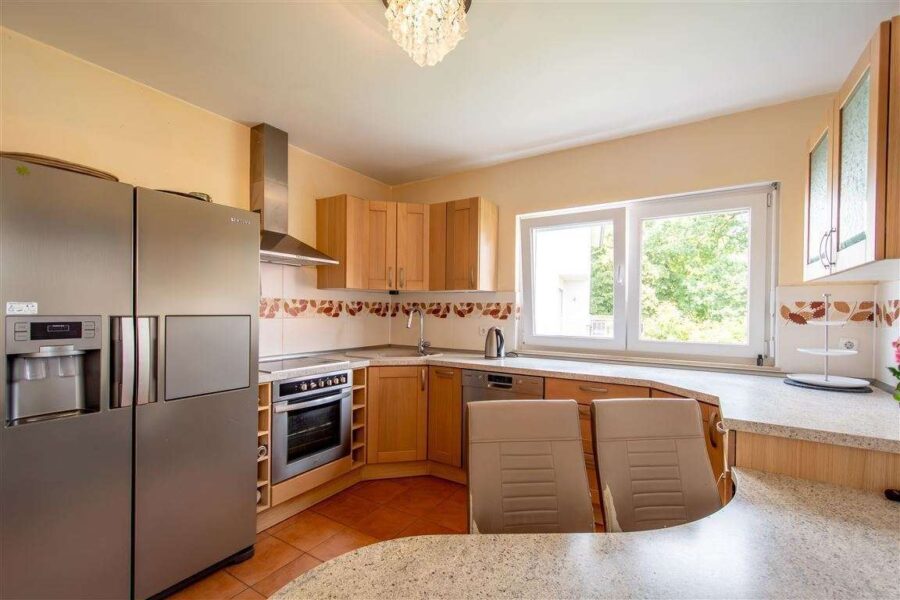 - Markeneinbauküche im EG mit gute Geräten von Bosch/Teka (Backofen, Herd, Spülmaschine) und Siemens (KS/GS), Abzugshaube von ?, Schiebetüren zum Essbereich