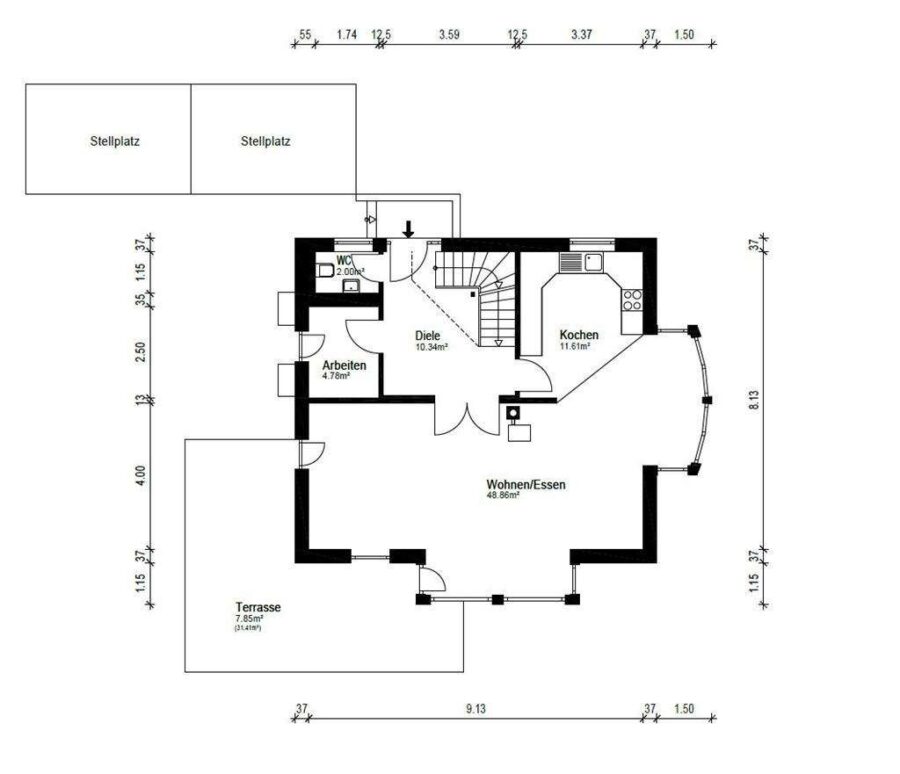 - Zwei Außen-Stellplätze auf dem Grundstück, Carport bzw. Garage denkbar