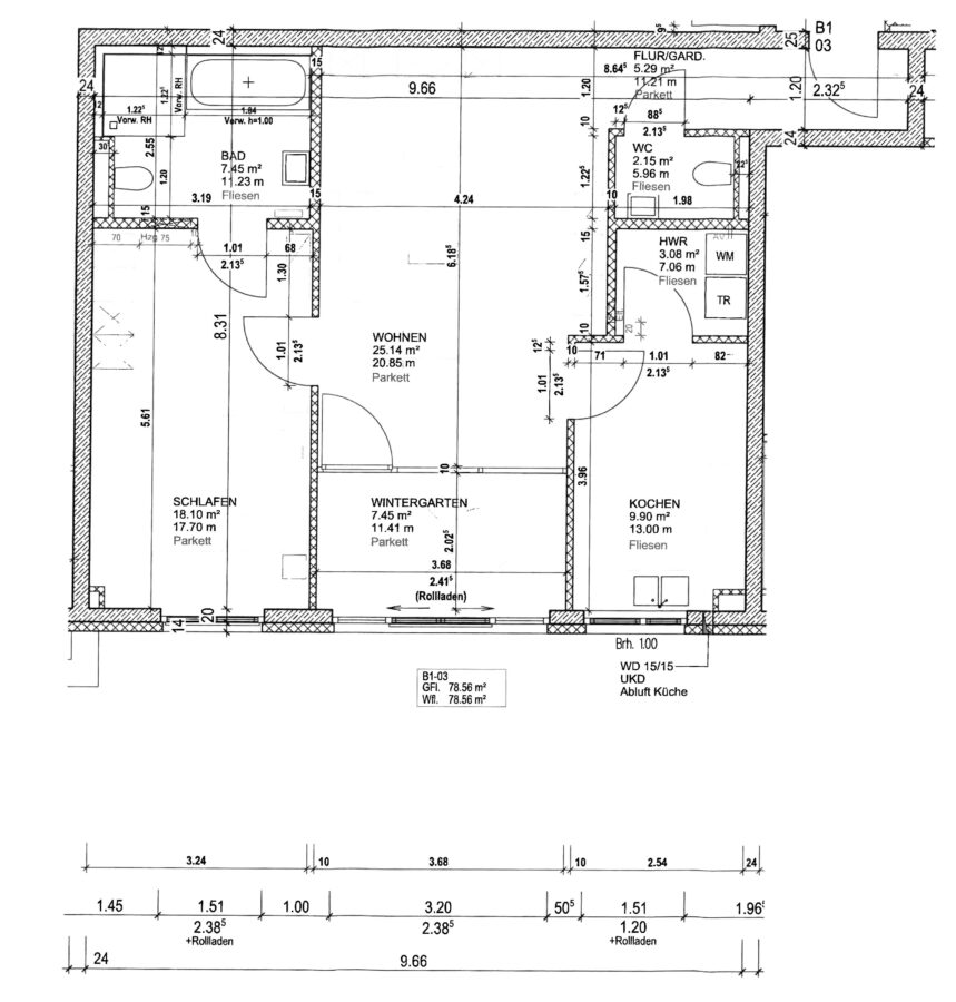 - Schönes Eichenparkett in den Wohn- und Schlafräumen, im Wintergarten (ggf. Essbereich) sowie im Flur