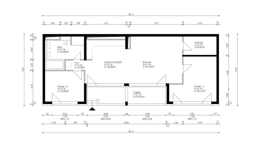 - Eigener / privater Zugang zur Wohnung über die nach Süd-Ost ausgerichtete Loggia (ca. 13 m², d.h. ca. 7 m² Wfl.)